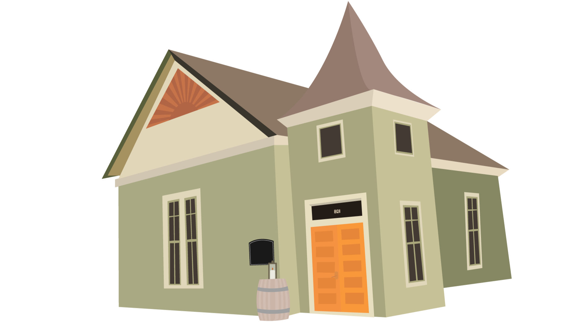 Using photos of each building, I created graphics using Adobe Illustrator and placed them on a map of the area.