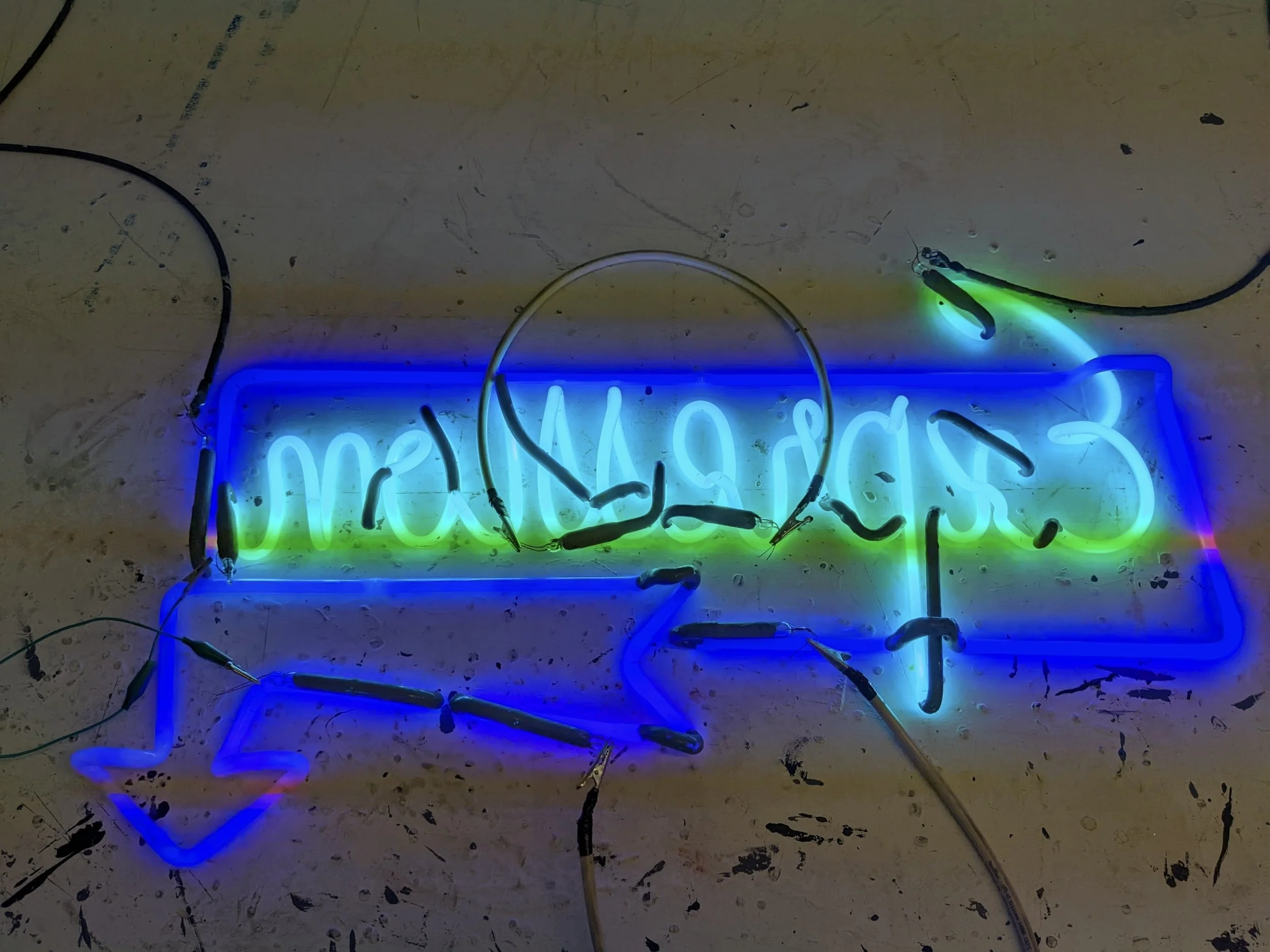 From there, it was printed and used as a guide to create the physical neon sign pictured above. A photo of the sign was used on the cover of the 2021-2022 Expressions Magazine and is hanging on the wall of the staff room.